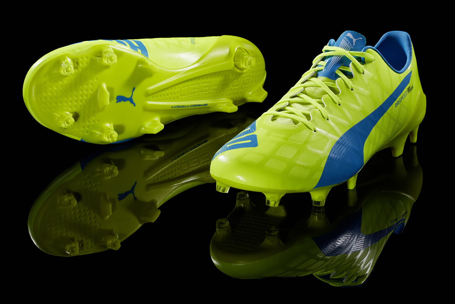 Herzogenaurach, Germany (26 December 2015) – PUMA today launches the evoSPEED SL-S, the new super lightweight football boot with a synthetic upper that offers extra durability for everyday use. PUMA players Sergio Agüero, Marco Reus, Antoine Griezmann and Marco Verratti will wear the new evoSPEED SL-S in the vibrant safety yellow and atomic blue colourway.